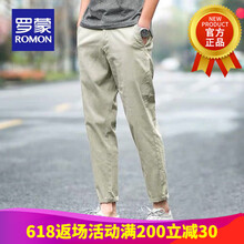 罗蒙(ROMON)春夏季薄款亚麻裤子男休闲裤男韩版潮百搭九分裤修身棉麻小脚裤男裤 卡其 L