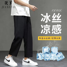 笺罗 冰丝裤子男夏季薄款潮牌ins宽松直筒男士韩版学生休闲运动纯色百搭潮流垂感九分裤 DF441黑色【直筒】 L