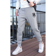 NORGAY 香港潮牌2021夏新款潮流时尚小脚修身灰色裤子男士束脚刺绣运动休闲裤男薄款 浅灰色 XL 31 32