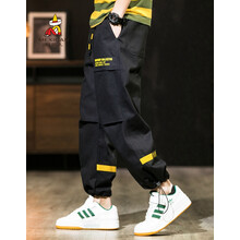 稻草人休闲裤男2021夏季新品宽松阔腿裤韩版哈伦工装裤子男 黑色 M