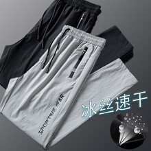 青春韵冰丝裤男休闲夏季2021新款休闲裤男冰丝透气速干裤宽松大码潮流直筒长裤跑步健身运动潮流轻薄吸湿 199直筒黑+199直筒灰 L
