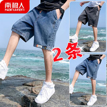 【两条装】南极人牛仔短裤男时尚潮流舒适百搭男装五分裤青春休闲透气男士沙滩裤夏季新款潮男个性青年七分裤 FS-202蓝色+FS-202黑色 XL