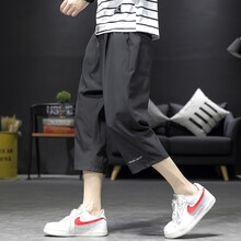 TSDFC 休闲裤男2021夏季新款男士潮流宽松运动速干冰丝加肥加大码胖子青少年过膝七分裤子 黑色 XL