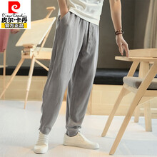 皮尔卡丹中国风棉麻男裤子夏季薄款哈伦裤宽松轻薄长裤男士大码亚麻休闲裤高档品牌男装针织 灰色M