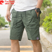 皮尔卡丹(轻奢高端)2021夏季薄款多口袋工装短裤休闲中裤男宽松直筒运动五分裤子男士气质时尚针织 军绿色 28
