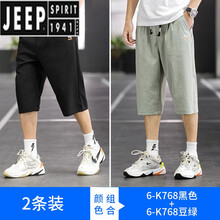 JEEP吉普旗舰官方店 高档男装男士短裤2021夏季外穿韩版潮流宽松运动五分沙滩裤薄款休闲七分裤 68黑+68豆绿 L