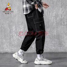 稻草人工装裤男 2021春秋新品多口袋休闲裤子男印花束脚九分裤 黑色 M
