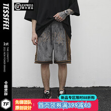 TF潮牌美式街头风HIPHOP花体刺绣丝绒撞色复古运动国潮短裤男士嘻哈潮牌五分裤男 灰色 XL