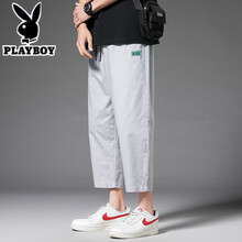 花花公子灰色休闲七分裤子男夏季韩版潮流宽松直筒冰丝薄款排扣八分裤 K136灰色 M