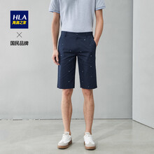 HLA海澜之家休闲中裤男经典微弹中腰舒适水洗休闲裤HKMCJ2R014A 藏青花纹14 175/82A