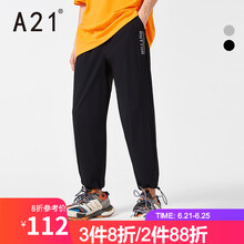 A21夏季2021新款男装弹力合体橡筋腰直筒九分裤字母印花百搭休闲裤 黑色 180/78A/XL