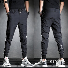 Oudeny潮牌夏季薄款锦纶冰丝休闲裤男长裤弹力宽松男裤运动休闲男士裤子小脚裤束脚裤T1 1910黑色 30