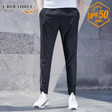 鳄鱼恤(CROCODILE)休闲裤男冰丝弹力松紧腰束脚裤男夏季薄款透气防晒裤子男 20021 黑色 XL/175