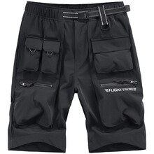 VIP/飞行潮牌短裤男夏季工装五分裤机能风多口袋运动潮牌宽松休闲中裤薄款 黑色 L