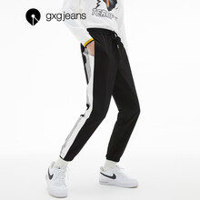 商场同款gxgjeans男装2020秋季新款休闲束脚长裤男撞色印花宽松运动裤韩版 黑色 175/L