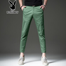 花花公子2021薄款裤子男士潮流百搭九分休闲裤男舒适小脚薄款 果绿色 28