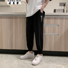古莱登 裤子男夏季新款潮牌休闲运动卫裤男学生宽松薄款工装束脚裤潮流时尚九分哈伦休闲裤男 黑色 3XL