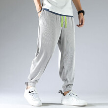 冠普威尔 冰丝裤子男夏季薄款宽松九分运动哈伦裤港风束脚裤夏天丝滑速干男士直筒裤休闲长裤 浅灰色(冰感超薄) XL【建议140-155斤】