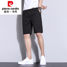皮尔卡丹【轻奢高端】品牌男装冰丝短裤男士夏季薄款五分裤2021新款潮流百搭宽松运动休闲沙滩裤针织 黑色 38