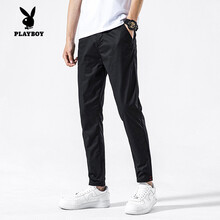 花花公子 休闲裤夏季薄款九分裤男宽松直筒男休闲裤夏天潮流百搭9分裤子 黑色 28