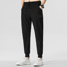 AIMINGVS裤子男夏季新款韩版潮流运动宽松潮流束脚九分休闲裤 纯黑色 XL【建议120-140斤】