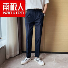 南极人(Nanjiren)九分休闲裤男士西裤垂感夏季帅气修身小脚西装裤英伦绅士痞帅潮流 藏青色 M/165