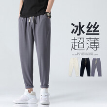 引尖 休闲裤男2021夏季新款男士潮流韩版宽松冰丝九分裤青少年学生裤子百搭时尚休闲透气长裤 灰色 XL