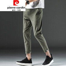 皮尔卡丹【轻奢高端】精品男装夏季薄款棉九分裤男裤修身小脚直筒分裤男士裤子休闲裤军绿色针织 军绿色 28