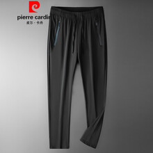 【官方】皮尔卡丹 中年冰丝休闲裤男直筒速干裤男士夏季2021年新款薄款透气裤子针织 黑色 XL