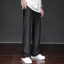 泰芝郎休闲裤男宽松冰丝裤男士夏季薄款运动卫裤男生直筒裤夏天阔腿裤速干大码男装胖子加肥加大长裤子 7068黑色 L(体重130-160斤)