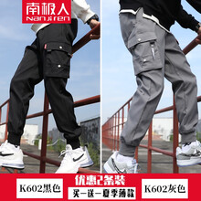 南极人【两条装】工装裤男夏季薄款ins潮牌修身裤子男士休闲裤运动大码宽松裤男哈伦小脚裤男装长裤 K602黑色+K602灰色 XL
