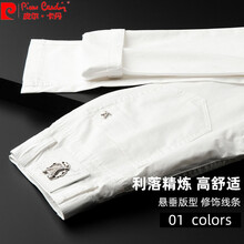 皮尔卡丹轻奢夏季经典纯棉白色裤男修身直筒复古水洗薄款休闲小脚长裤高档品牌男装针织 白色 31