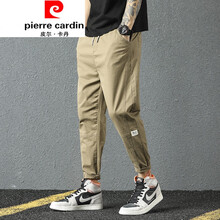 皮尔卡丹【轻奢高端】精品男装裤子男潮流夏季薄款休闲裤男宽松直筒九分运动裤工装针织 卡其色 30