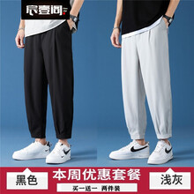 宸壹阁 休闲裤男夏季冰丝速干潮流大码直筒束脚九分裤男士韩版潮牌薄款哈伦裤男生宽松弹力运动裤子男 黑色+浅灰色 5XL