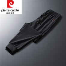 皮尔卡丹【高端轻奢】品牌 弹力冰丝九分长裤男运动宽松大码透气夏季薄款中年男士休闲裤针织 黑色-束脚 4XL