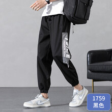 ℘古莱登ℑ男士休闲裤夏季薄款束脚九分运动裤子青少年时尚潮流小脚长裤 黑色 L