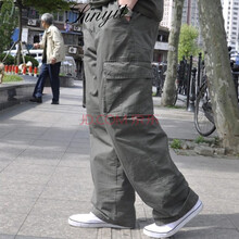 纯棉男装春款工装裤男大码男裤多口袋肥佬裤加肥加大户外裤松紧腰直筒休闲裤男宽松男裤 663(夏季薄款军绿) 5XL(建议体重230-260斤)
