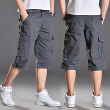 贵迎夏季工装裤薄款宽松短裤男士多口袋中裤户外休闲运动型七分裤男加肥加大码中裤 深灰色 4XL(3尺-3尺1)