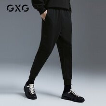 GXG男装【斯文系列】 21年春秋黑色休闲针织男直筒裤束脚长裤 黑色 170/M