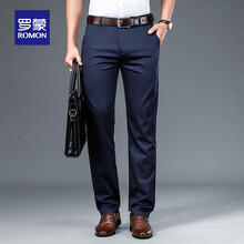 罗蒙夏季薄款桑蚕丝中青年男商务免烫长裤子宽松直筒休闲男裤 宝蓝 28