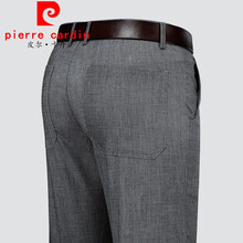法国皮尔卡丹夏季薄款天丝亚麻休闲裤男宽松直筒中老年西.裤高腰爸爸冰丝长裤子针织 jk5160灰色 28