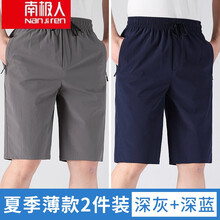 南极人轻奢高档男装2021年新款男士冰丝速干短裤宽松休闲七分裤男夏季薄款爸爸中老年人大码裤子男 【夏季薄款2件装】深灰+深蓝 3XL