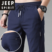 JEEP吉普夏季新品冰丝休闲长裤男韩版潮流新款夏季薄款宽松直筒弹力运动裤子男 蓝色 30