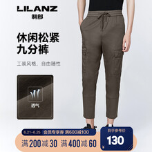 利郎休闲裤男士2021夏季新品运动松紧腰工装大口袋棉混纺九分裤子 中灰绿(Q0