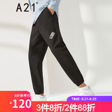 A21秋冬2021新款男装弹力橡筋腰束脚九分裤 2021秋季新潮男舒适织唛装饰休闲裤男裤子新疆棉 黑色 175/76A/L