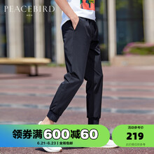 太平鸟男装夏九分休闲裤束腿裤薄款刺绣微弹青年运动九分裤 深藏蓝色2 XL
