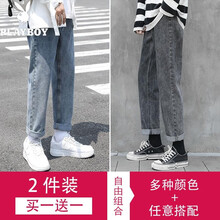 花花公子【两件套】牛仔裤男2021夏季新款潮流时尚简约百搭宽松印花肥大青年学生帅气潮牌日常休闲宽大款 B108蓝+B108黑 31