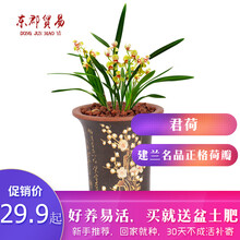 东郡贸易国兰 精品建兰花苗 水晶荷 夏带花苞出售室内外配盆土肥好养鲜花卉盆栽 名贵正格荷瓣兰草小盆景 君荷3苗连体裸根,配盆土肥