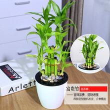 发财树栀子花绿萝文竹芦荟小盆栽花卉办公室绿植鲜花水培植物 白色自吸水盆富贵竹 含盆