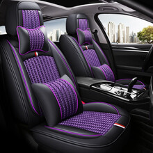 汽车坐垫四季通用全包围座垫皮冰丝夏季车座套新款专用小车座椅套 黑紫色 其他车型选项 客服会致电联系